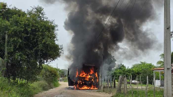 Ônibus escolar de Barrocas é destruído por incêndio enquanto recolhia estudantes na zona rural